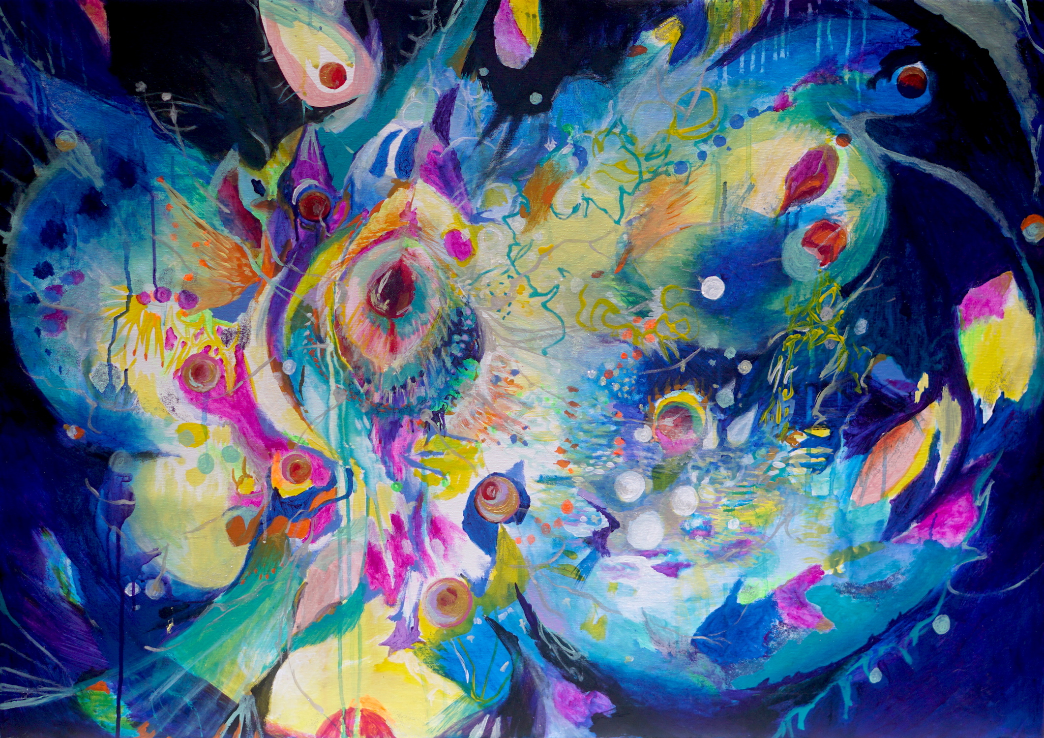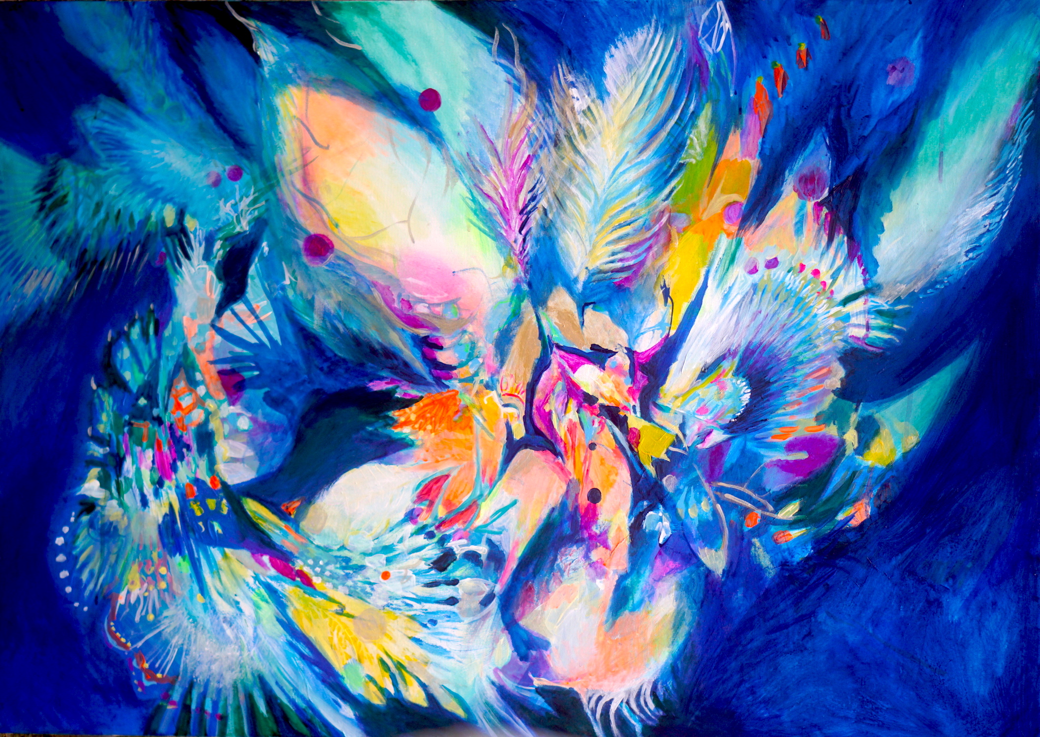 Le opere sono portali energetici e trasmettono energie incoraggianti e rigeneranti. Vengono create all’aperto, nella natura, al mare, in uno stato meditativo e di ispirazione.