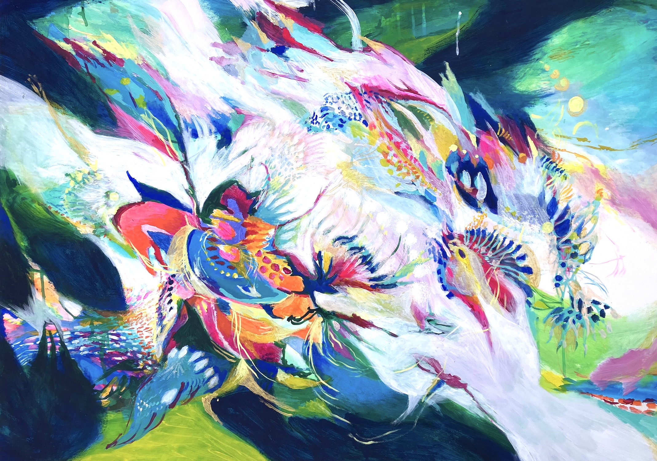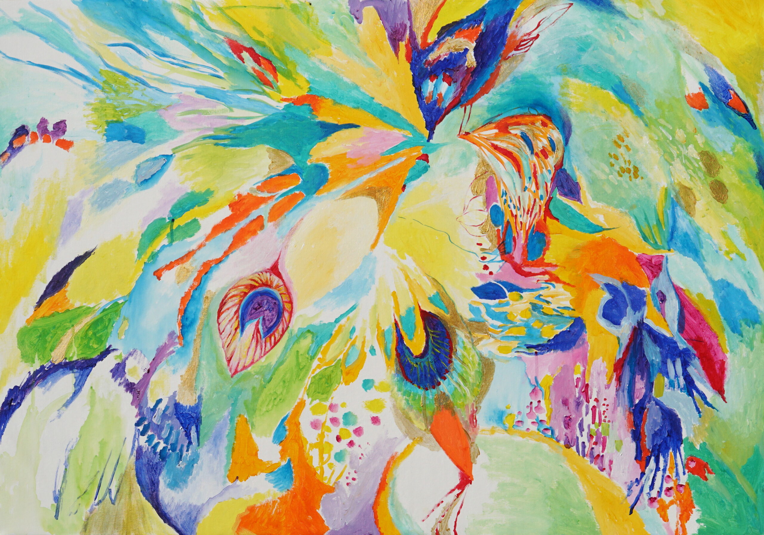 Acrilic su tela, 70 x 100 cm, Acquerelli con Foglie d’Oro 22 Karat su Carta Cotone 300g