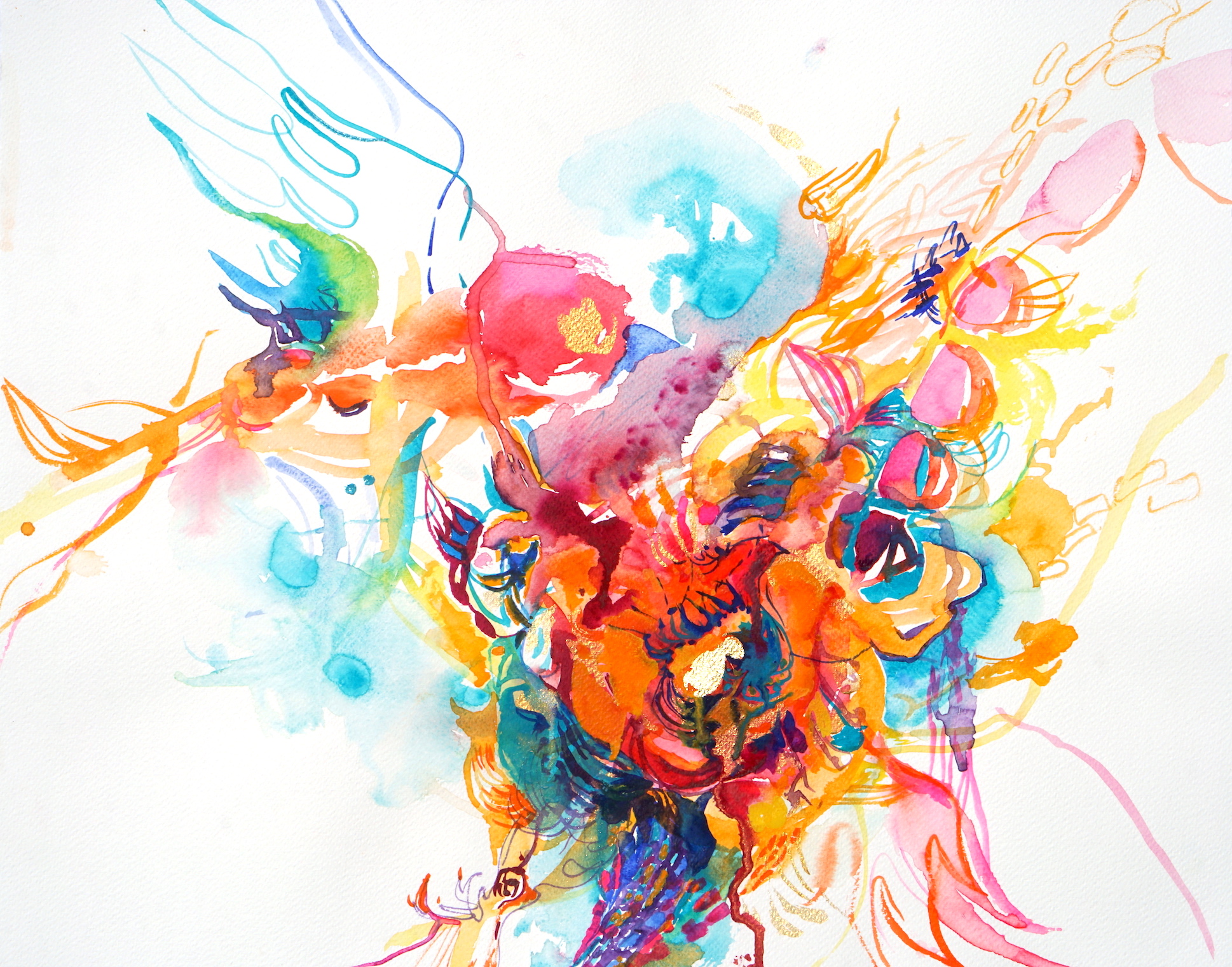 Serie d’Acquerelli con Foglie d’Oro 22 Karat su Carta Cotone 300g