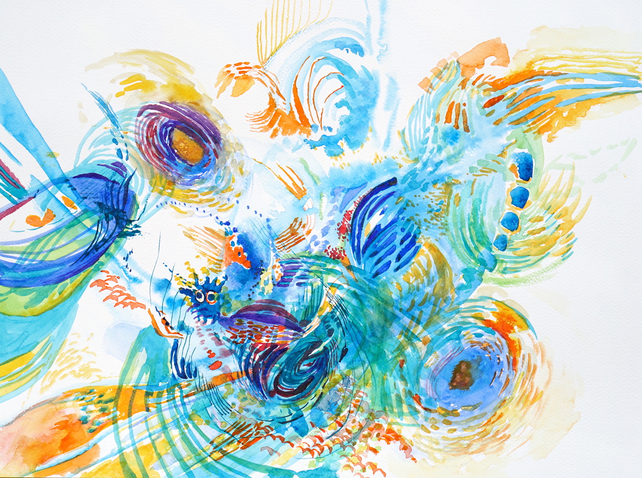 Vedo i miei acquerelli come partiture ispirate, al contempo, dalla osservazione del mare, dal suo influsso su di me, ma anche dall’improvvisazione musicale che faccio con il mio clarinetto: