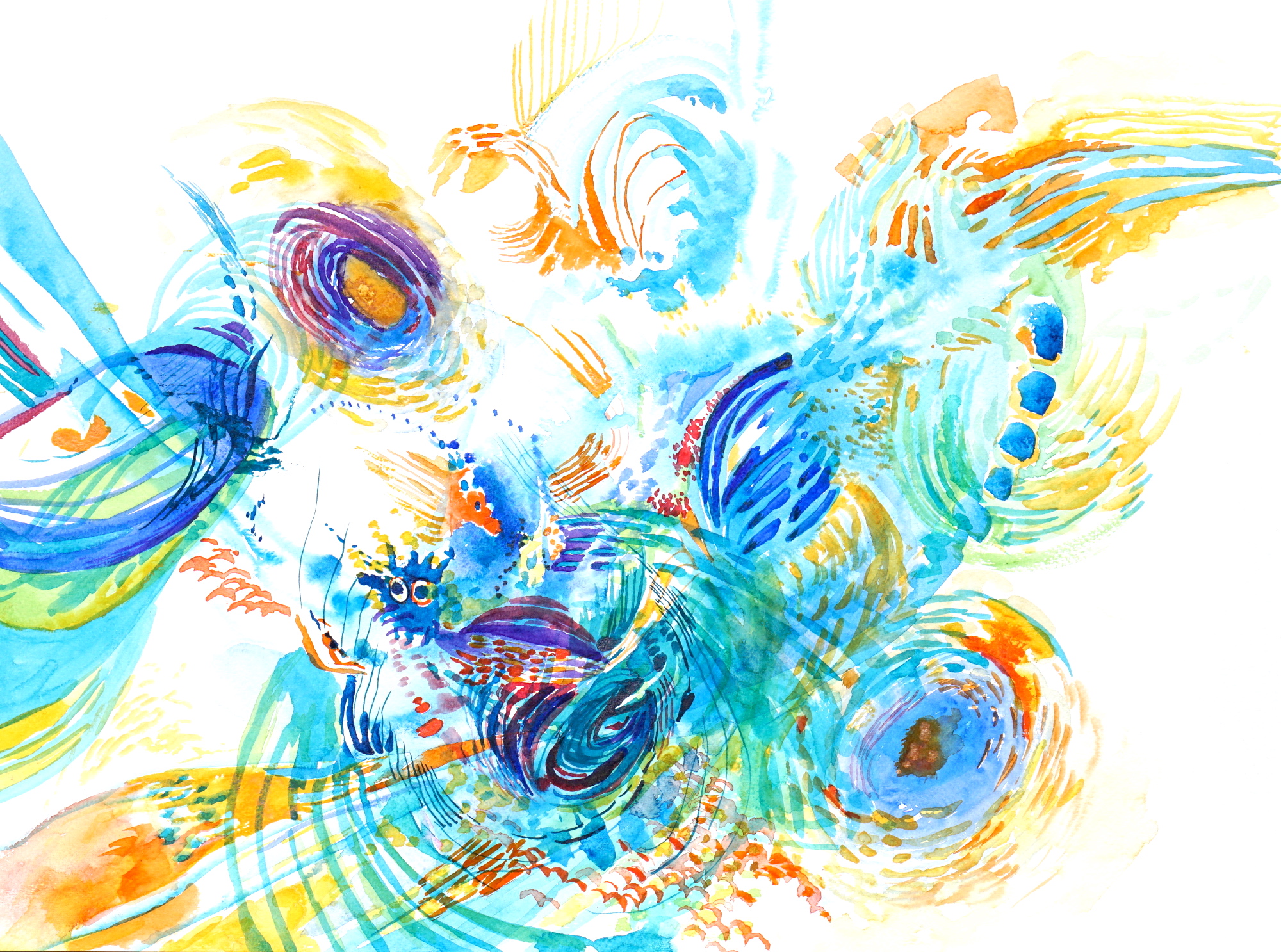 I see my watercolour paintings as scores inspired, at the same time, by the observation of the sea, its influence on me, but also by the musical improvisation I do with my clarinet: